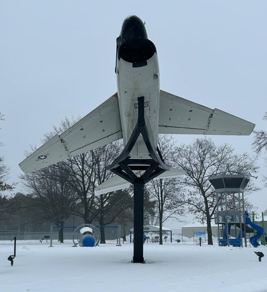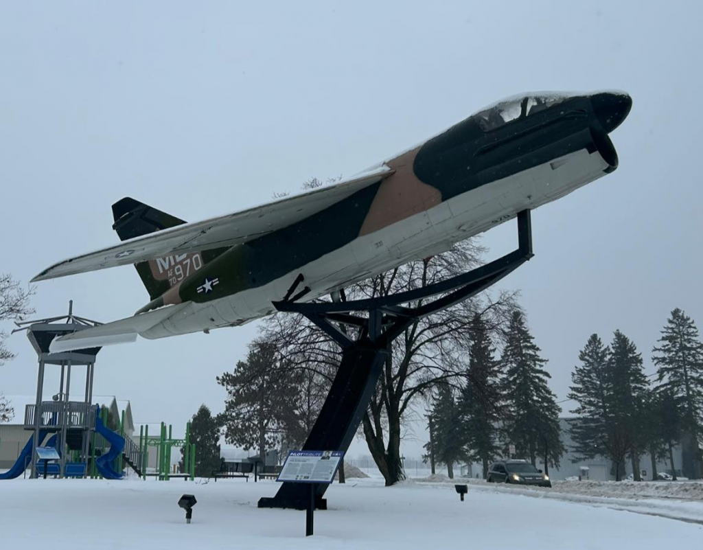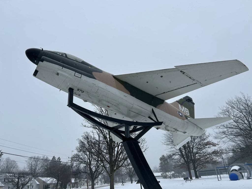 This jet was placed at Wausau’s Veterans of Foreign Wars (VFW) on River Drive to honor the pilot that flew it during the Vietnam War, Air Force Lt. Col. Colin Arnold “Arnie” Clarke (1935-2010). It was moved to its current location in 2018 after the park was fully renovated to include an aviation theme.