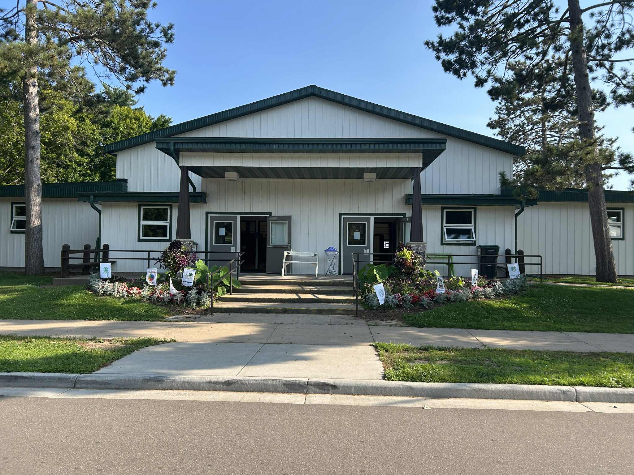 A huge White Pine log sits in front of the building is a white pine and it states “White Pine Commemorating Wausau Pioneer Lumber Industry Cut Dec. 29 1937 by Yawkey-Alexanderler. CO at Dubler,Wis. 500 years old Kiwanis Project.”