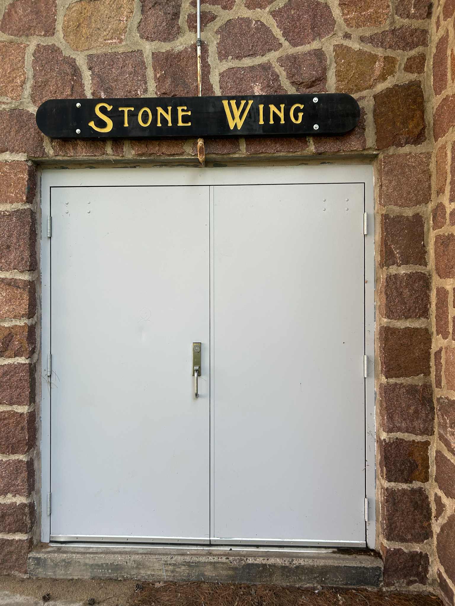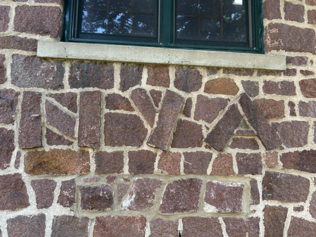 Built in 1939 with granite in the architectural style of Vernacular. At one time it featured a large stage.
