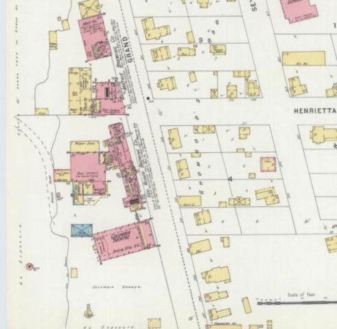 By 1898 the building on the site was was called Columbia Theater ans included a beer garden This building burned in 1907.