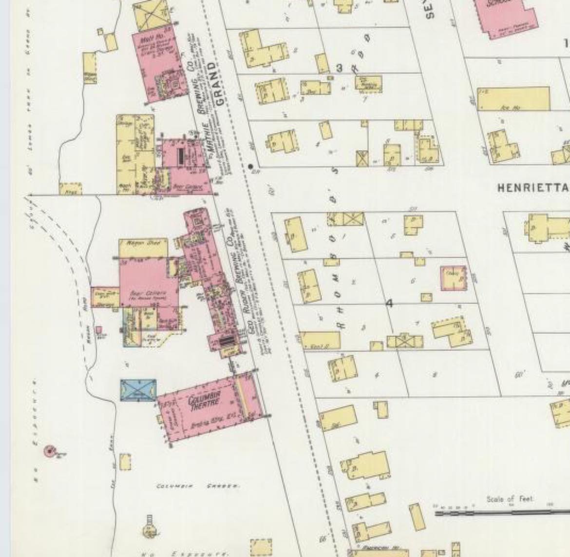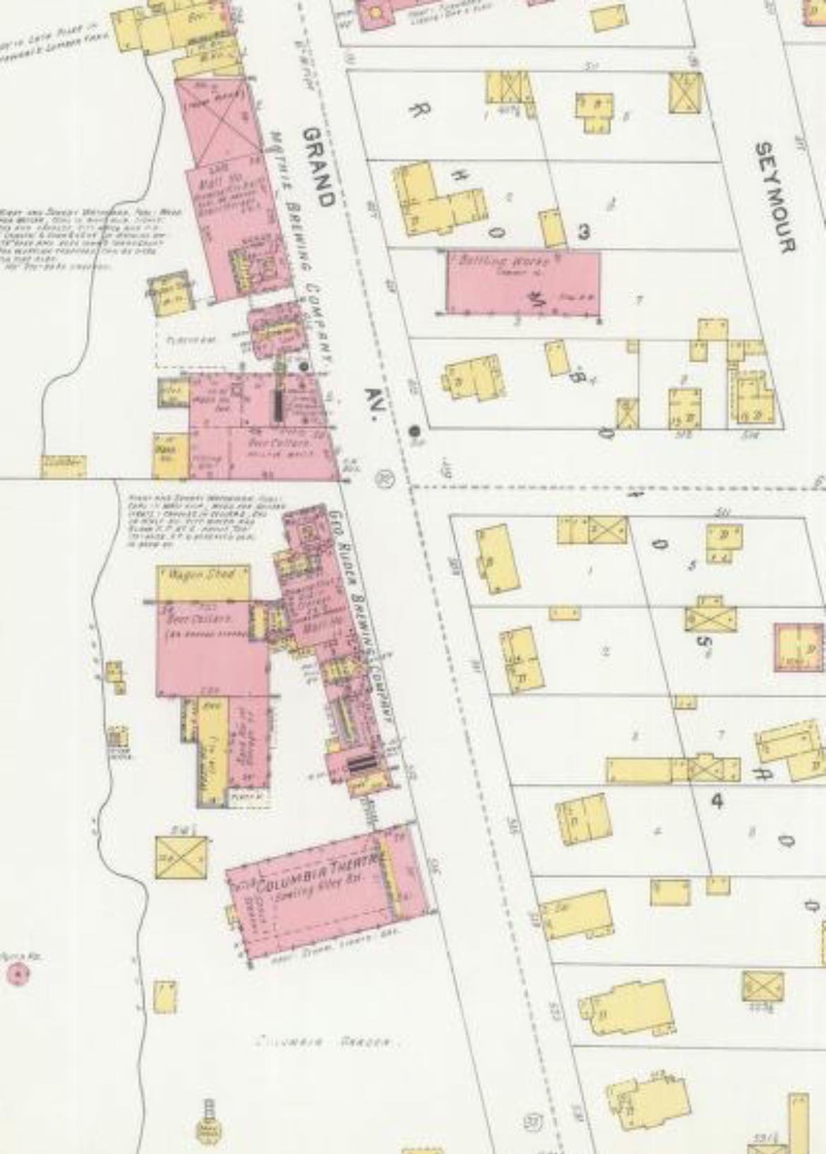 This piece of land lies next to where the George Ruder Brewery was in the 1860s. George used it as a recreational space for the brewery employees. It was then known as, not surprisingly, Brewery Park. It was renamed to Columbia Park at some point. The building included a bowling alley even.