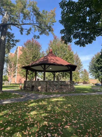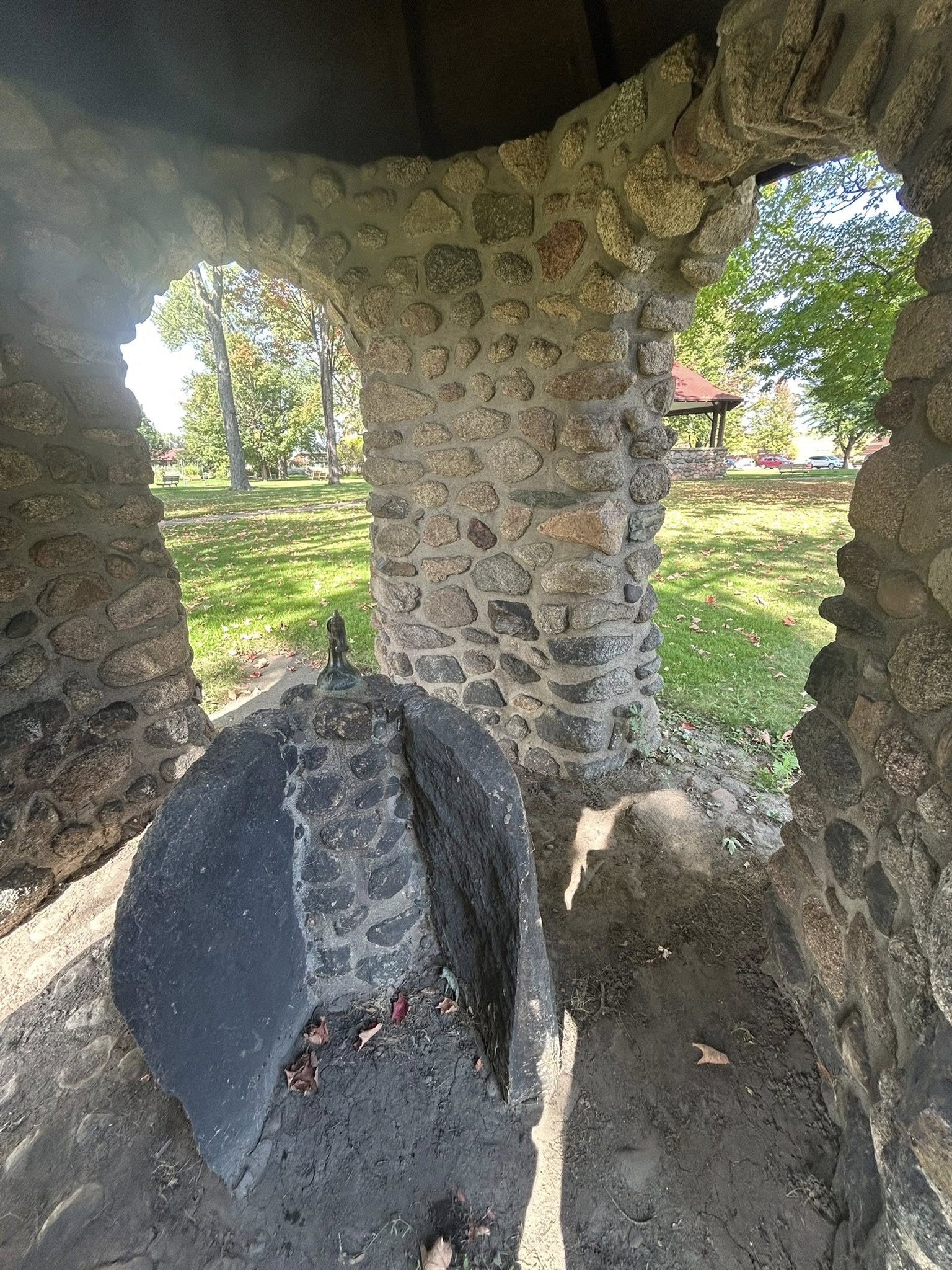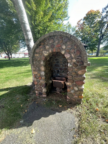 In 1923 Sue Hammond Rea purchased the property. She worked with architect Charles H. Ramsdell to create the landscaping as well as adding the bandstand, , drinking fountain, and grotto in about 1928. All of these were created with local fieldstone. At one time there was also a fence along the road to keep citizens safe.