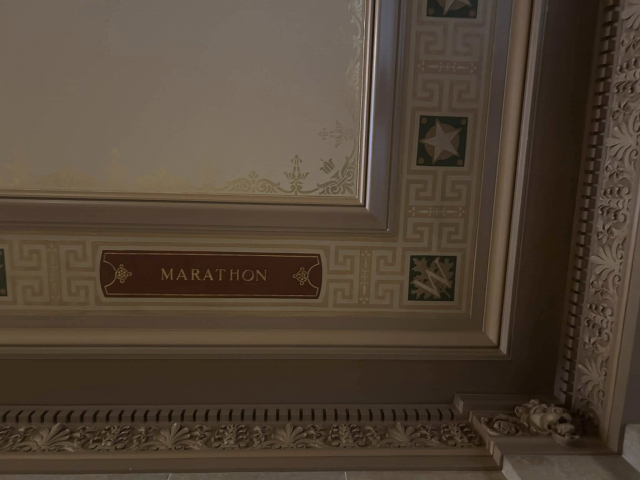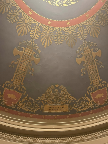 There are several great links to Wausau and Marathon County within the Capitol that you should look for when you visit. First is the “Marathon” on the ceiling in one of the wings and “Wausau” on the entry way ceiling of another wing.
