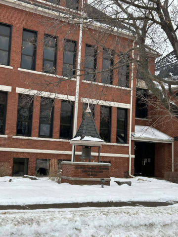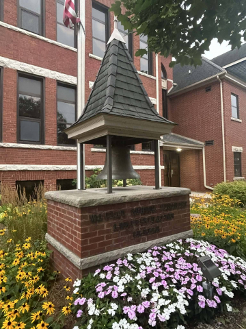 The bell that sits out front is originally from Humboldt School and used to signal the start of the school day. That school was built in 1874 and sat on the corner of 6th and Jefferson Streets. It was Wausau’s first brick school. Today the bell is used as a logo for the Wausau School District, representing all of Wausau’s schools.